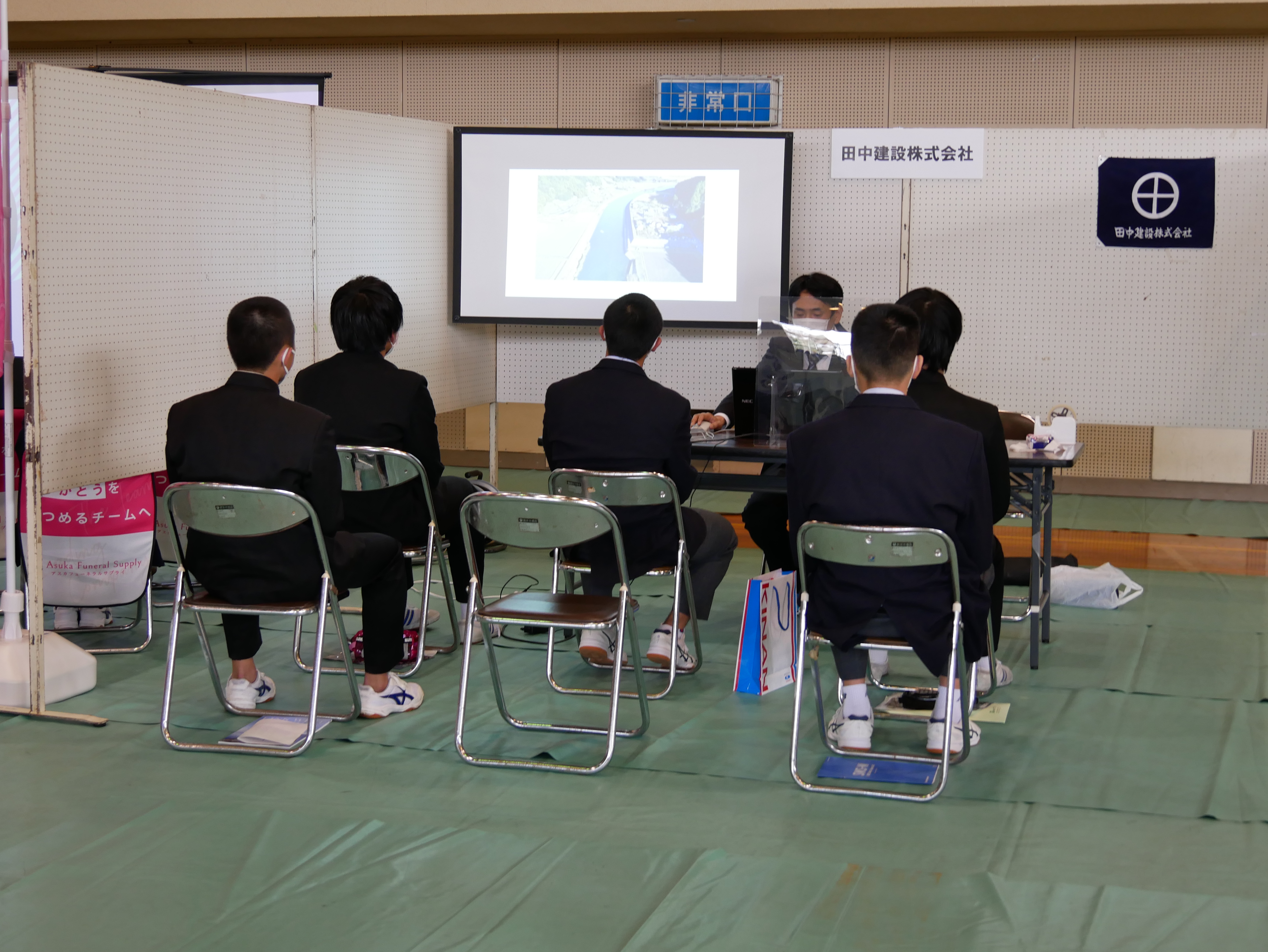 3月17日『地元企業知っとこガイダンス2022』に参加し、当地域の高校生の方々に建設業および当社のPRをして参りました。 熊野地方就職フェア実行委員会による参加企業21社、参加生徒多数というイベントで2020年から2年越しの開催となりました。当社は16名の方にお話を聞いて頂きました。建設業とはどういった仕事なのか?技術者さんはいつもどんな仕事をしている?当地域のすごいところ。当地域で就職するメリットとは?など幅広いお話が出来たかと思います。今後就職や進学を考えていく皆様の参考になれば幸いです。