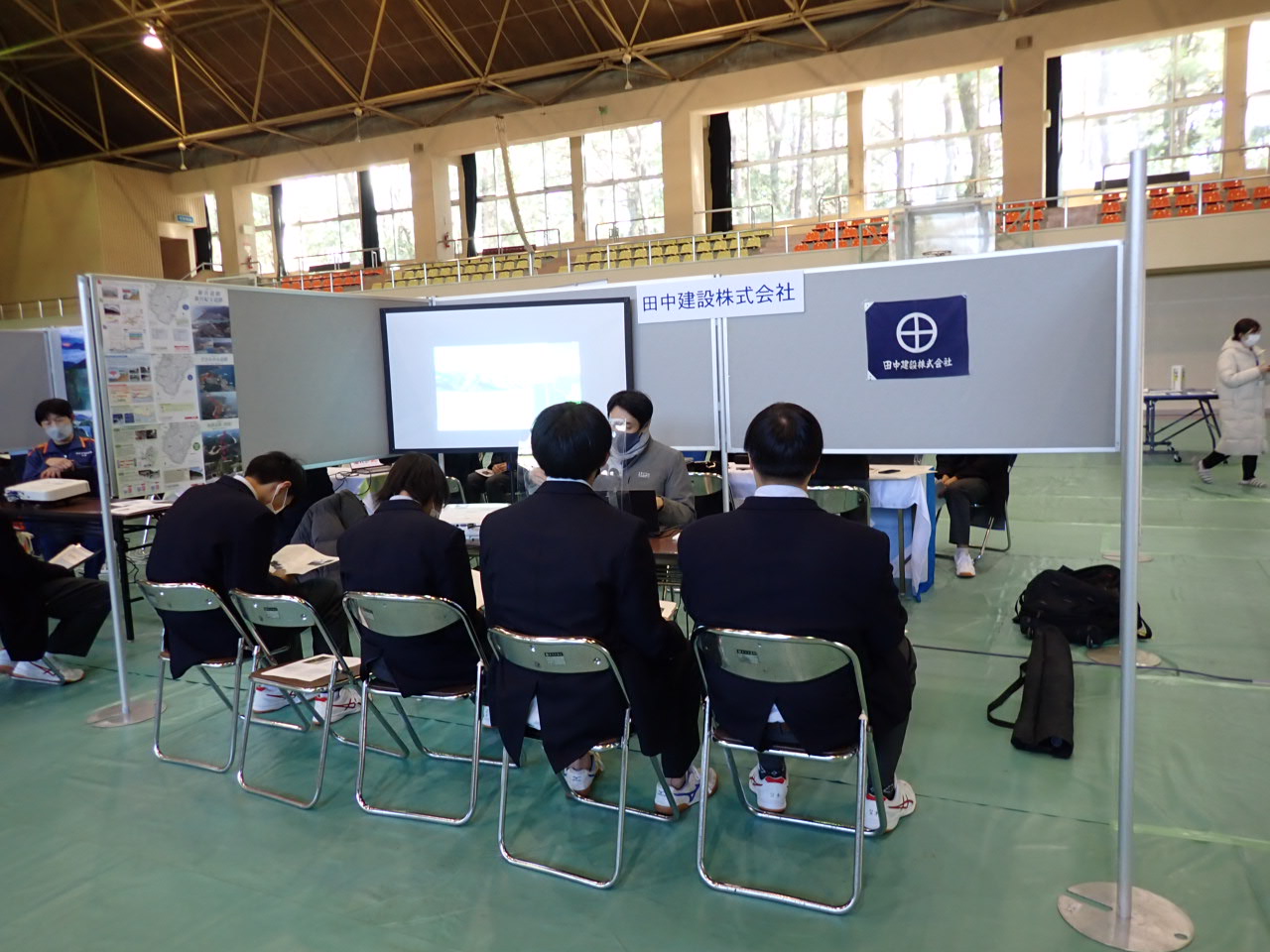 2月16日『地元企業知っとこガイダンス2023』に参加し、当地域の高校生の方々に建設業および当社のPRをして参りました。 熊野地方就職フェア実行委員会によるイベントで昨年に続き参加させて頂きました。当社は約20名の方にお話を聞いて頂きました。参加された皆さん熱心に聞いて頂きましてありがとうございました。建設業の面白さや、当地域で暮らすことの良さを少しでも感じて頂けたならば幸いです。
